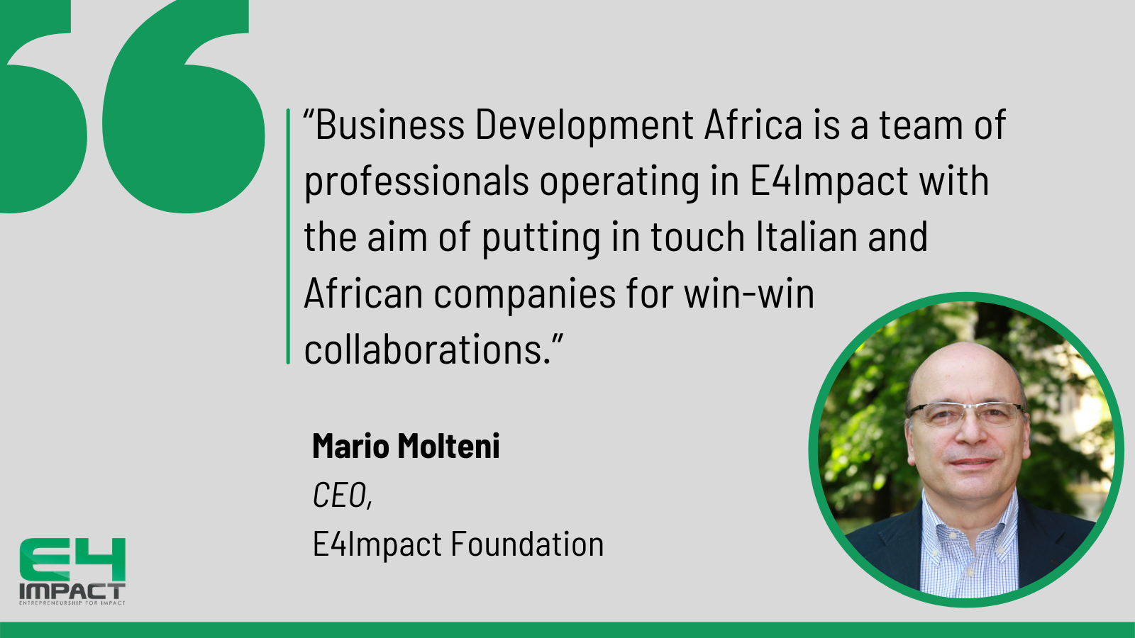 Going on with the fourth section, we’ve had the chance to hear Claudio Notarantonio, Director of the supply chain at WeBuild (participant of E4Impact), speaking about Innovation and technology in terms of sustainability and technical excellence. Finally, Alessandro Moretti, partner of Andersen presented Mr. Aubrey Tshalata, President of the National African Federation for the Building Industry (NAFBI), Chairman of ACEEED and Representative of Limpopo Eco-Industrial Park, that showed his experience as an African entrepreneur with an African business.
